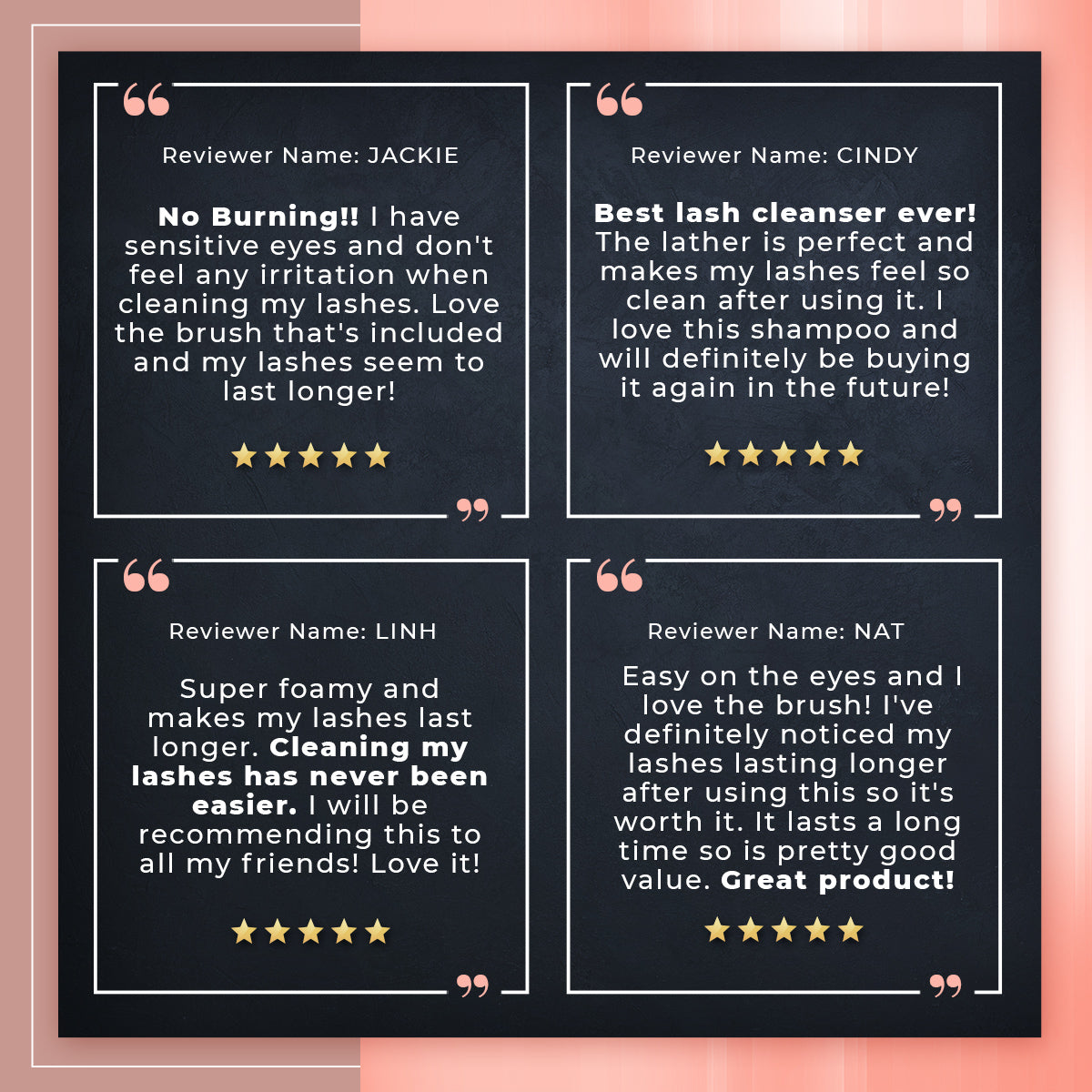 💙 SALON SAFE & CRUELTY FREE - We work tirelessly to ensure all of our products are completely safe to use. Our lightweight lash extension cleanser lather is hypoallergenic and does not include any of the nasties other cleansers do. All manufacturing and packaging is safe by medical standards and animal testing is NEVER used so it's cruelty free! This eyelash extension cleanser is also safe for vegans :)
